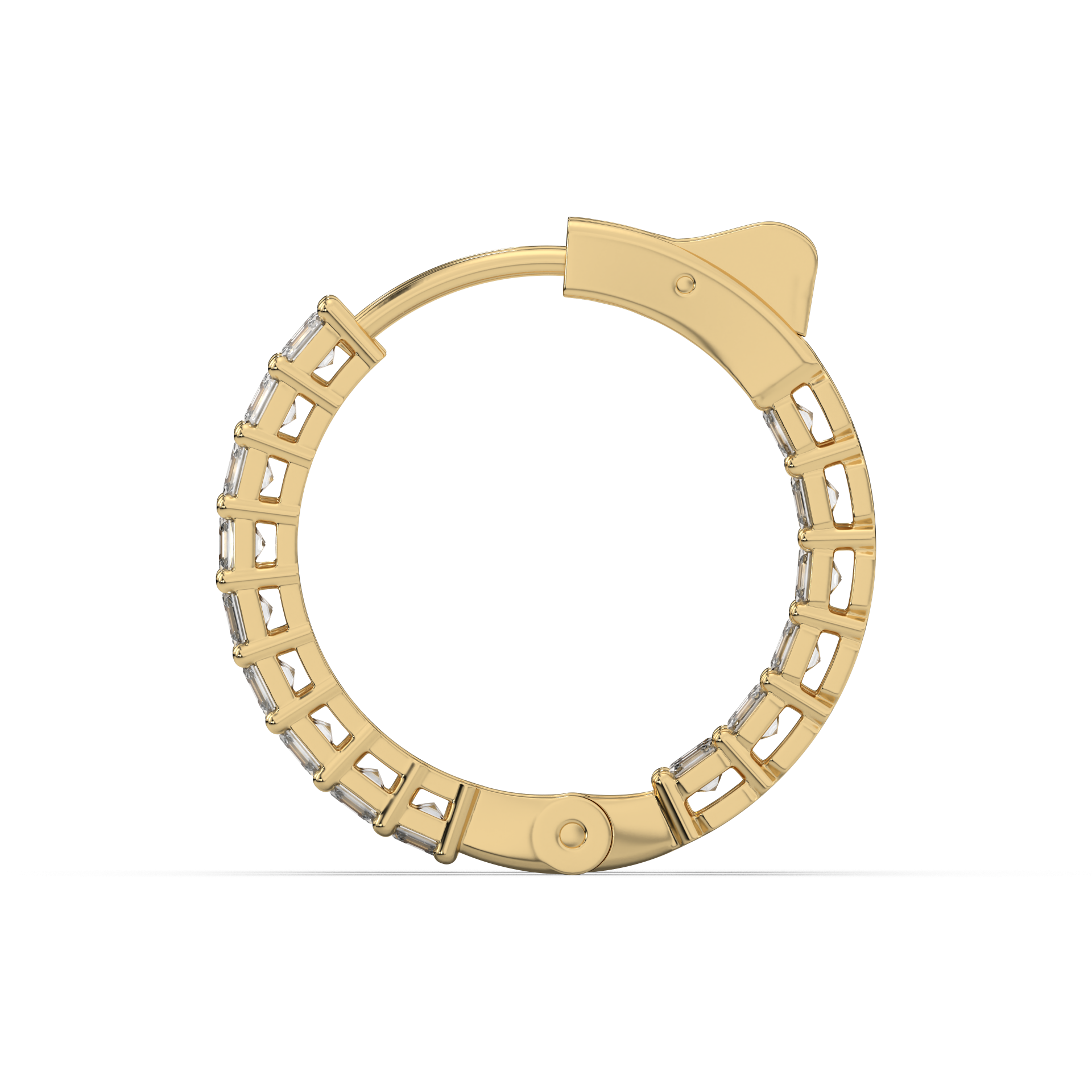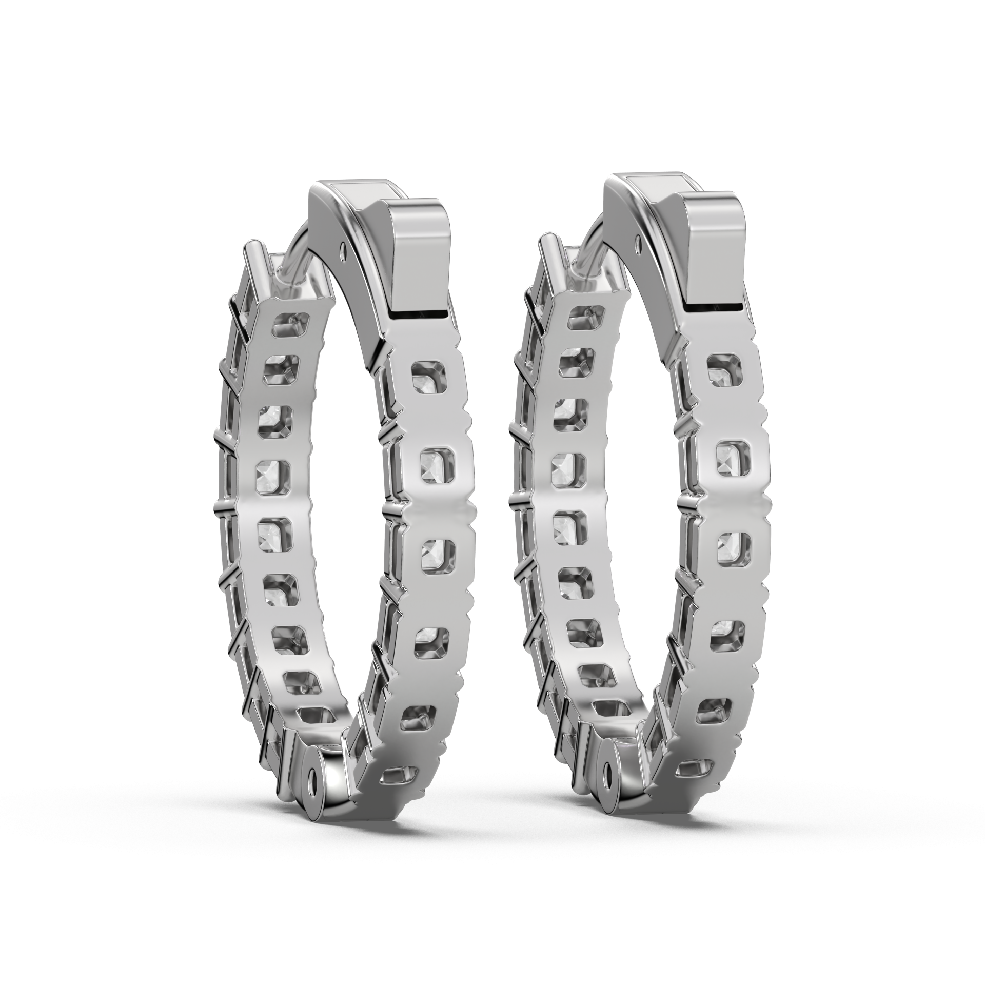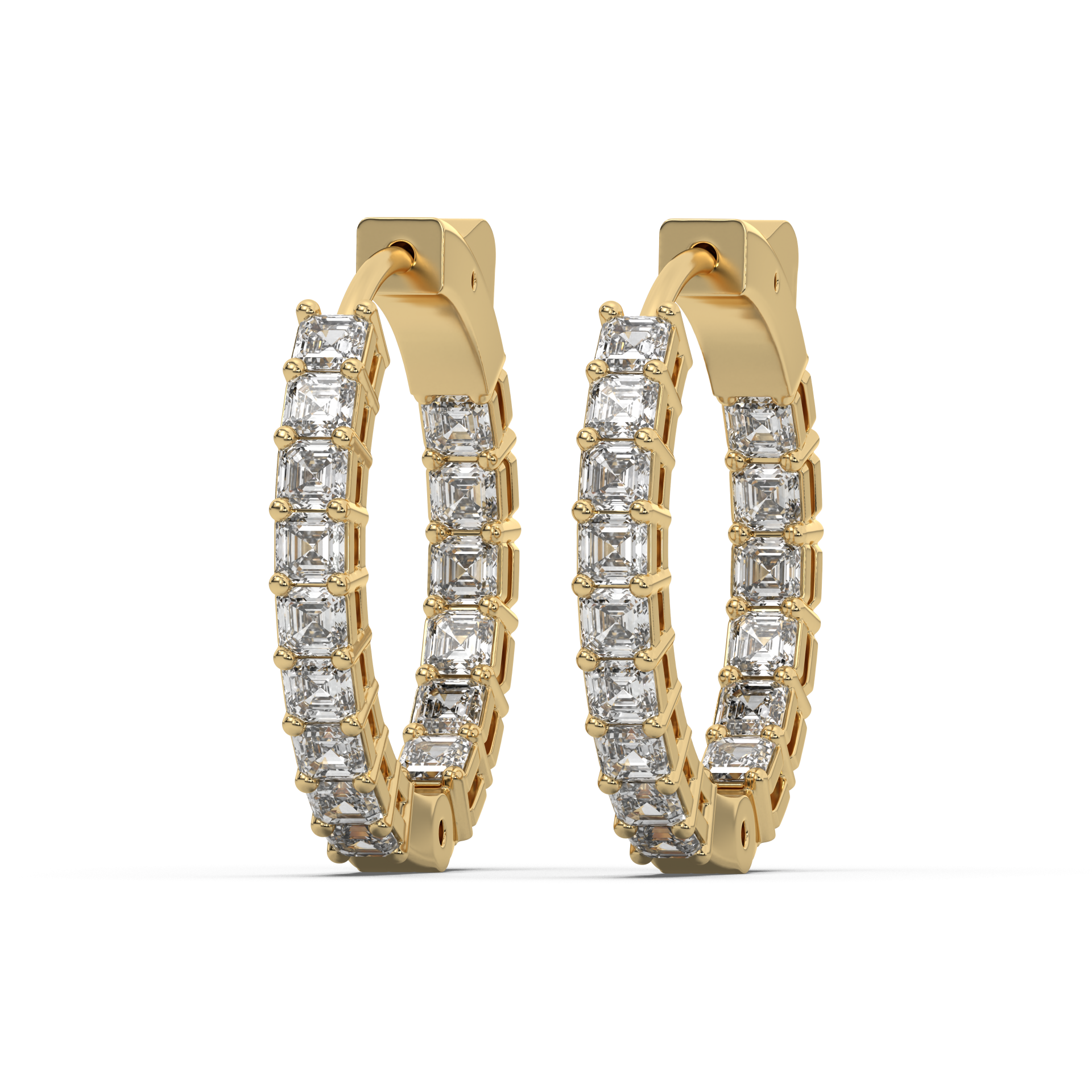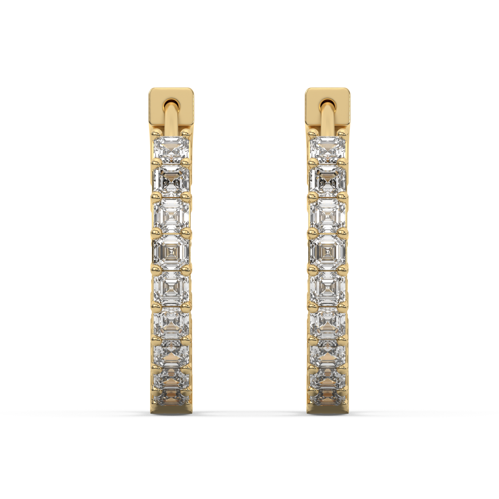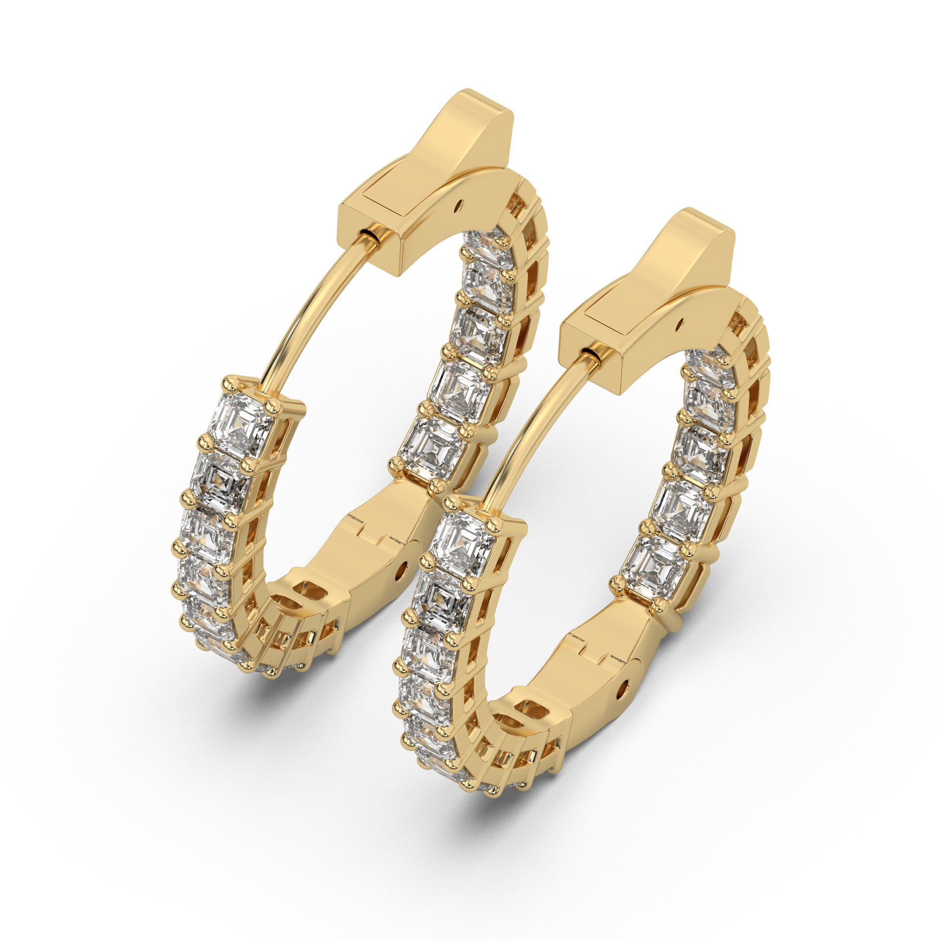 Framed brilliance. Bezel-set Asschers wrap the hoop in vintage glow and precision.