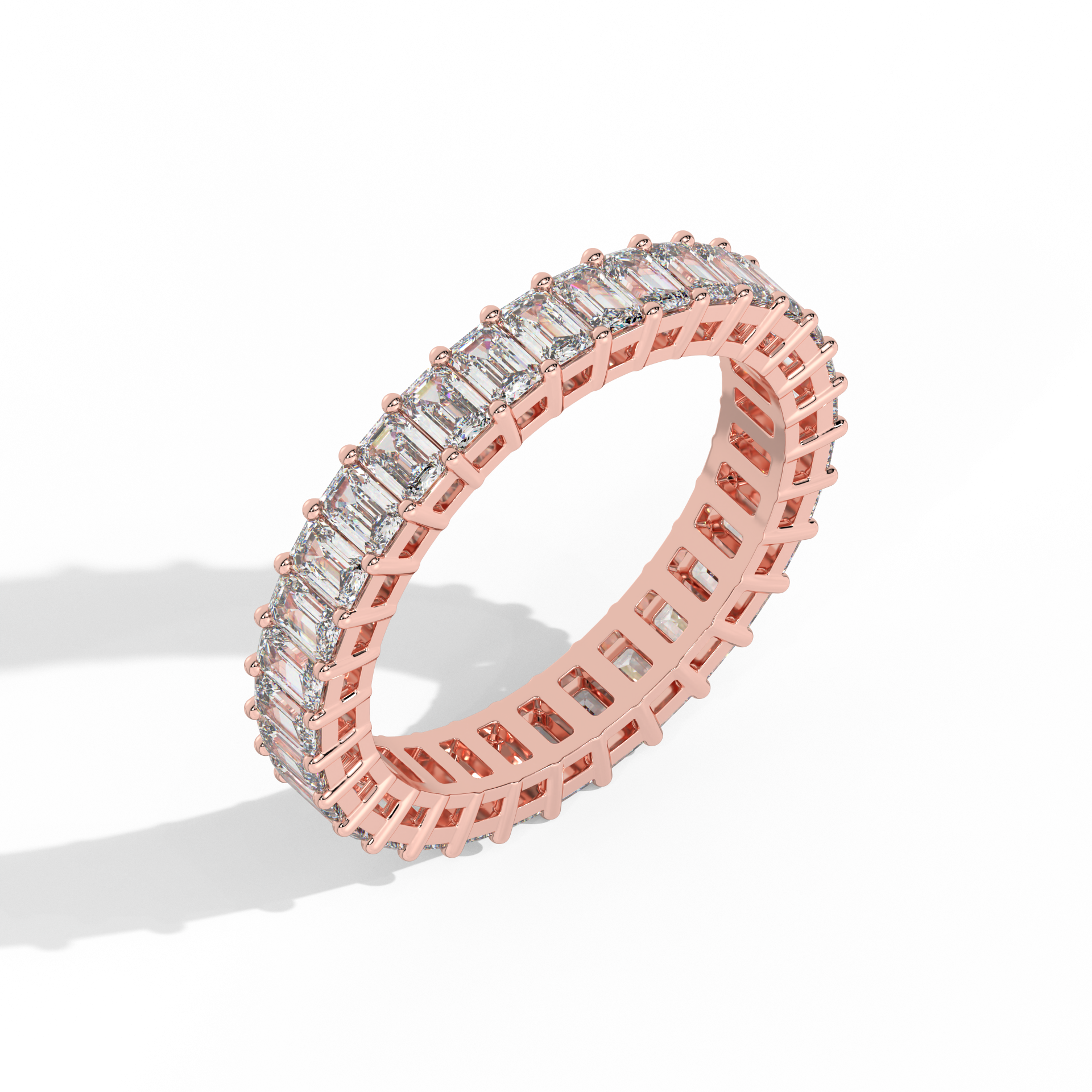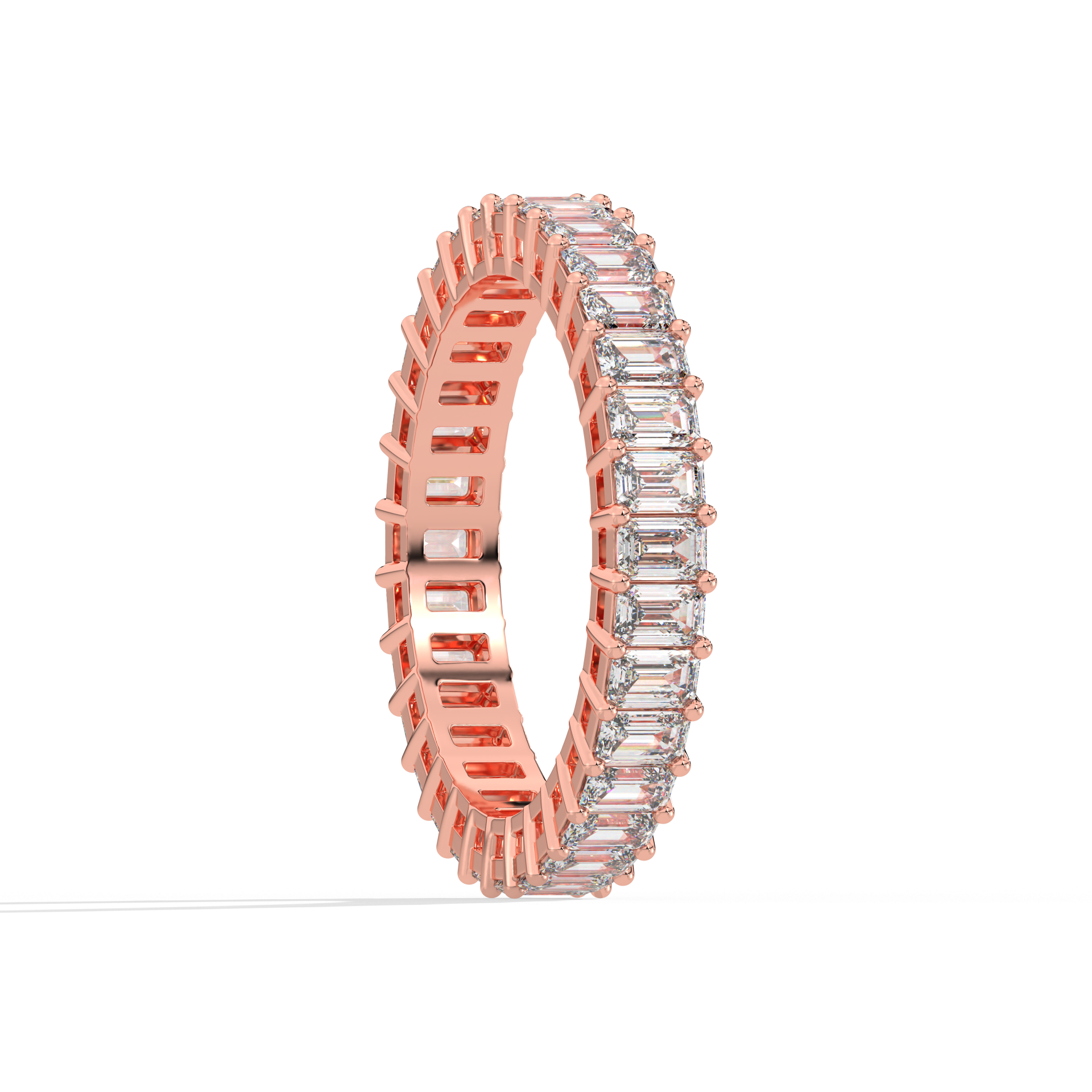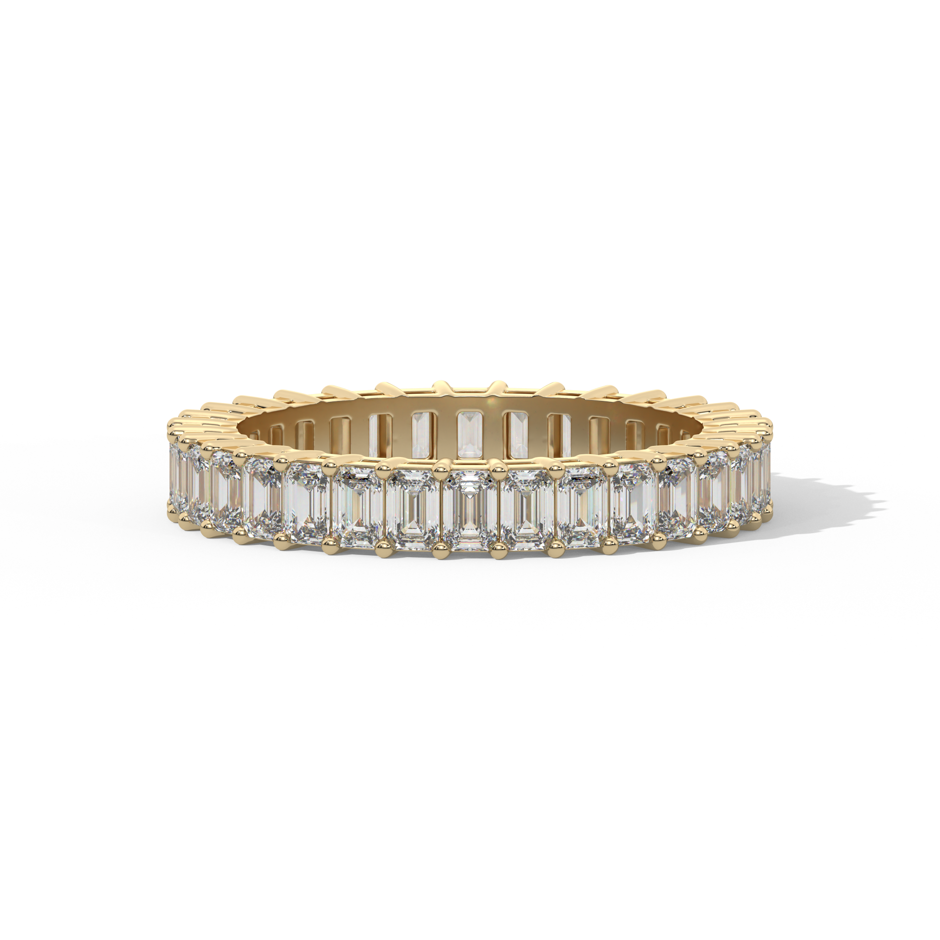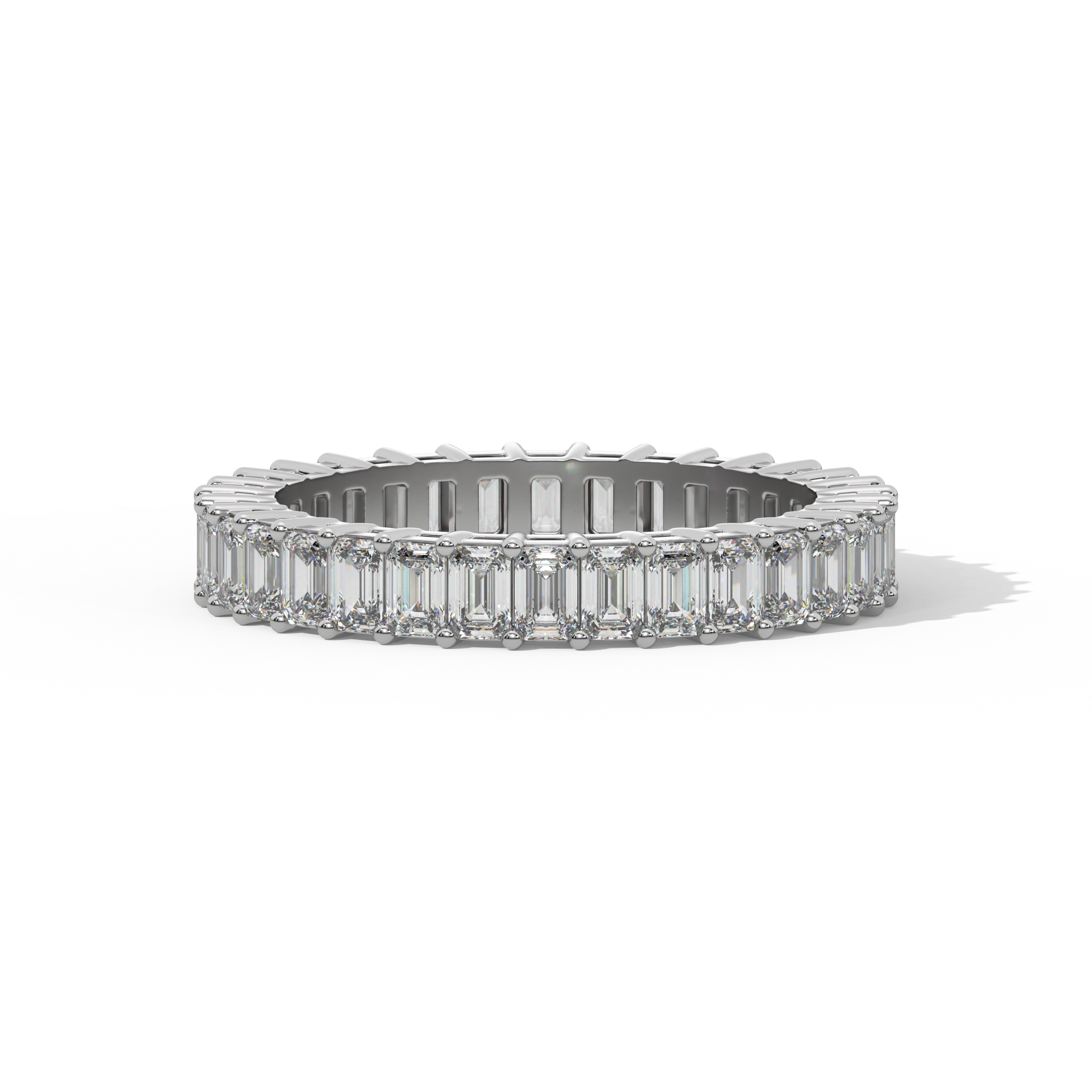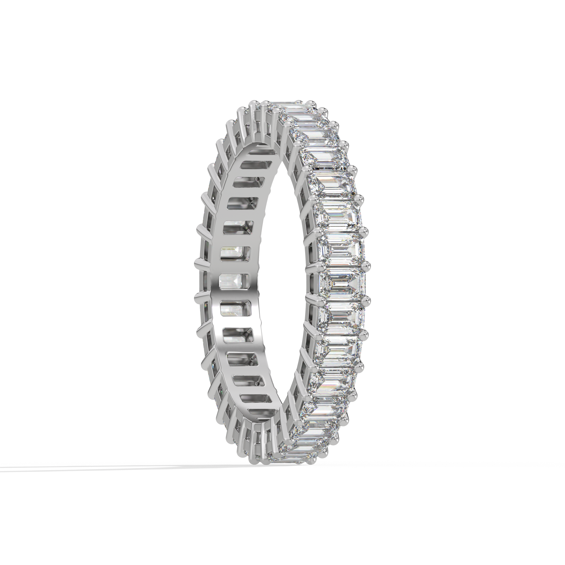 A band of poised elegance. Emerald diamonds stand vertically, circling the finger with architectural charm and strength.