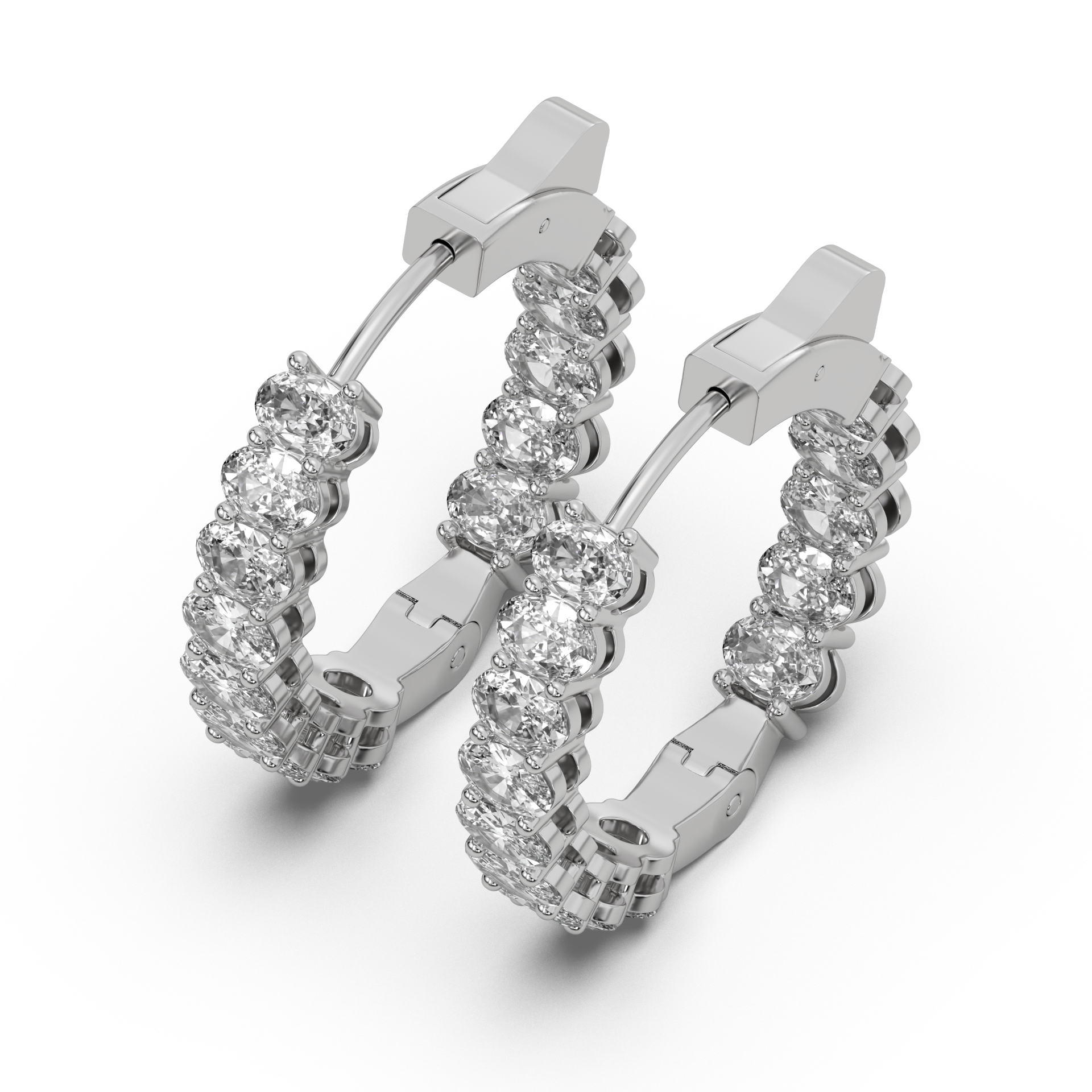 Soft yet striking. Oval diamonds in vertical rhythm bring a modern twist to the classic hoop.