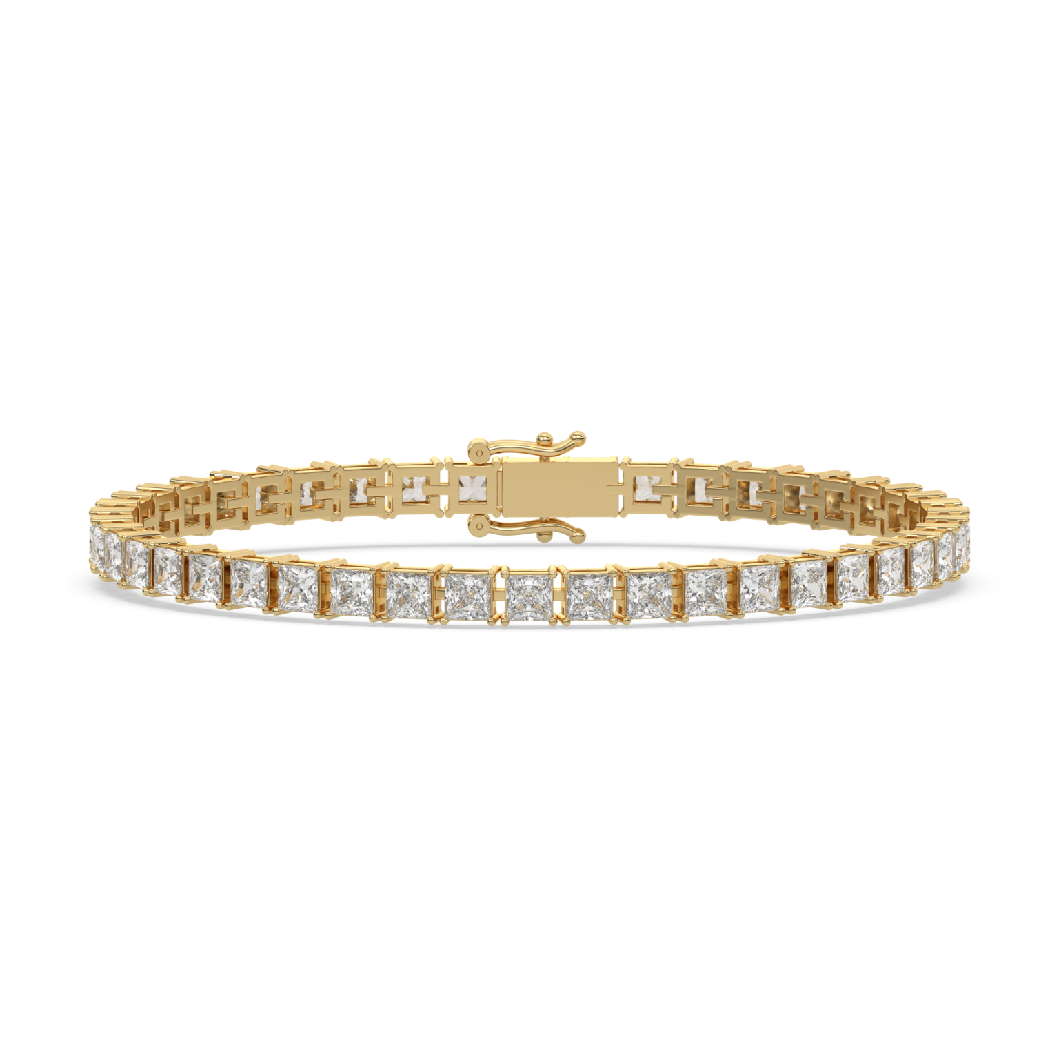 Sharp beauty. Square princess diamonds align seamlessly, forming a bracelet of clean lines and luminous precision.