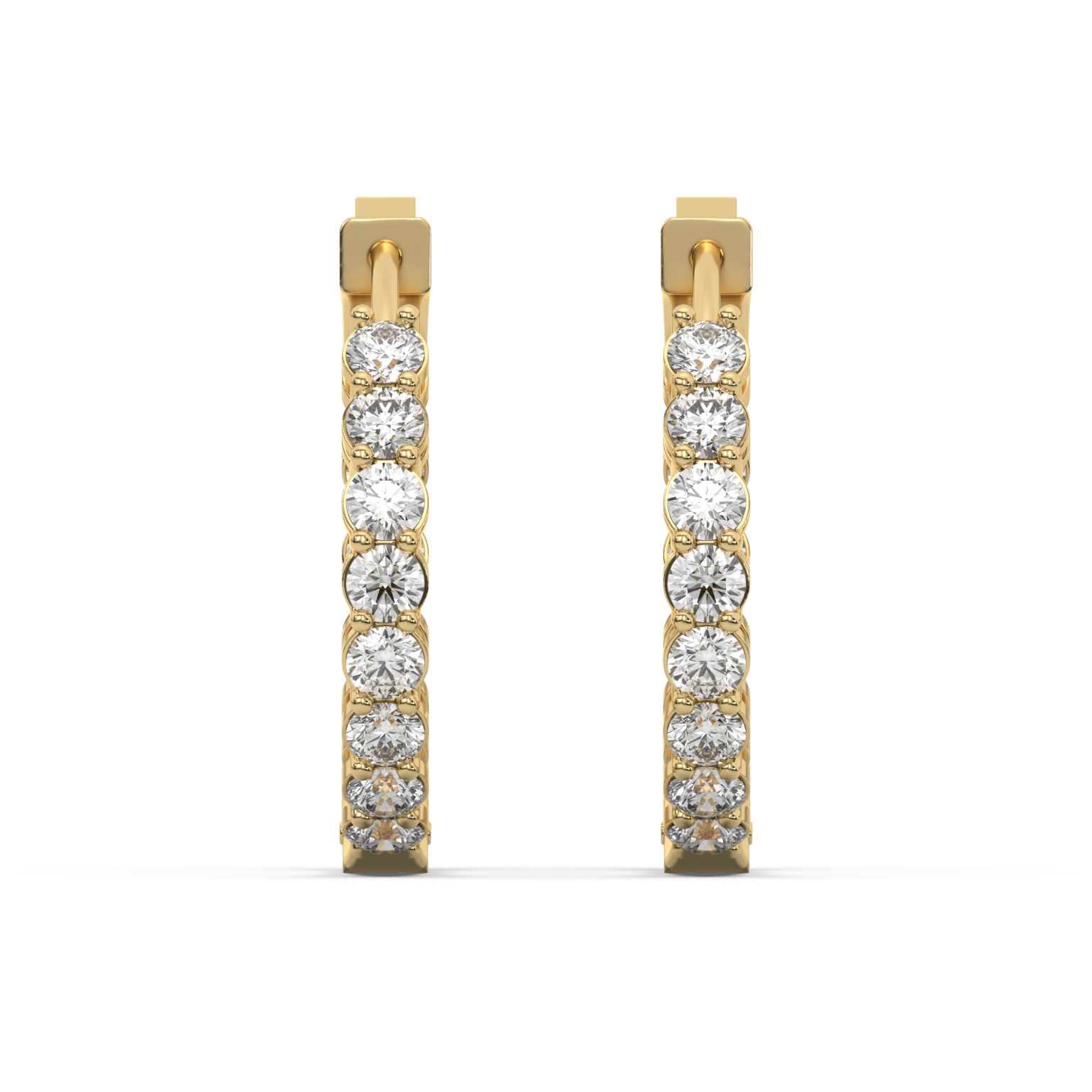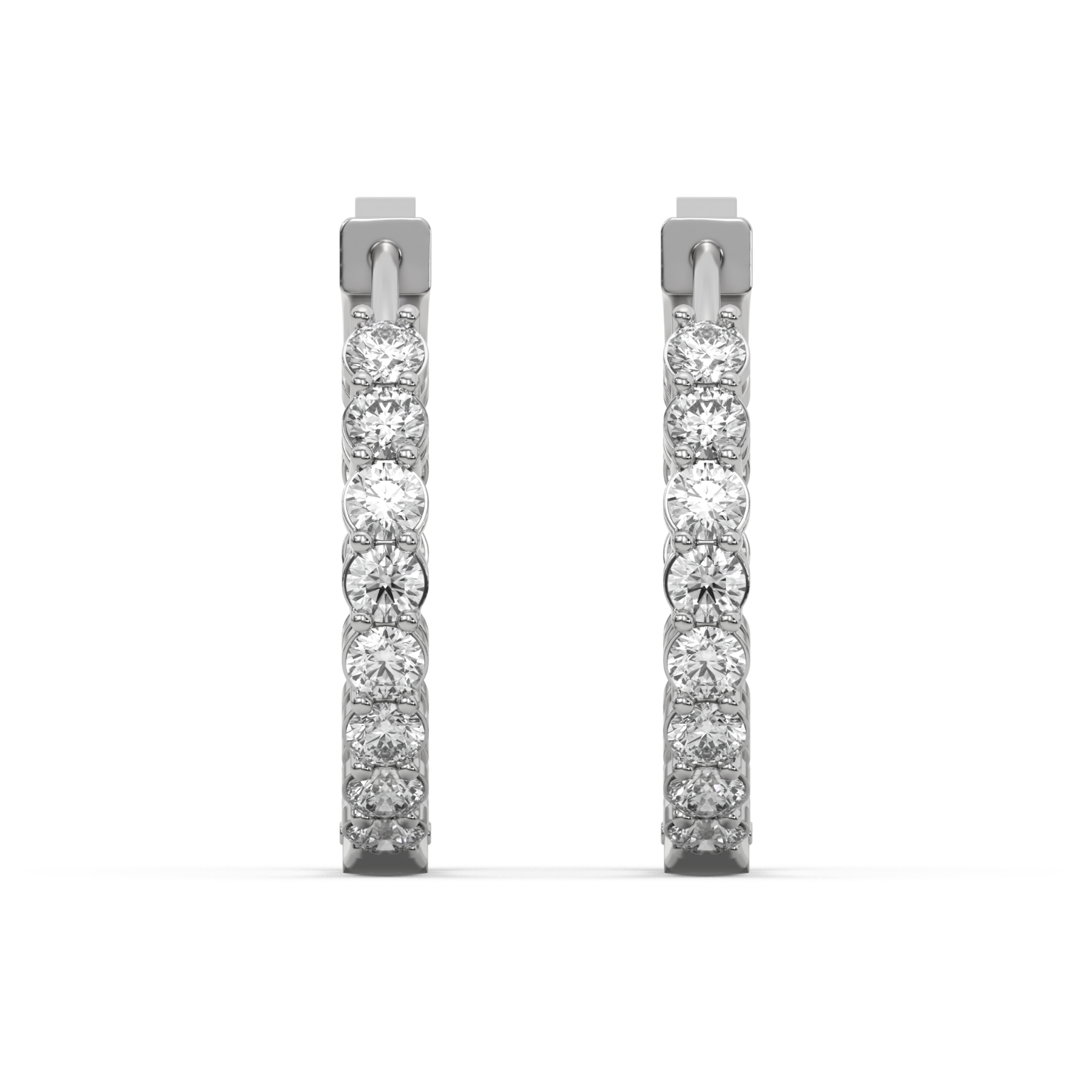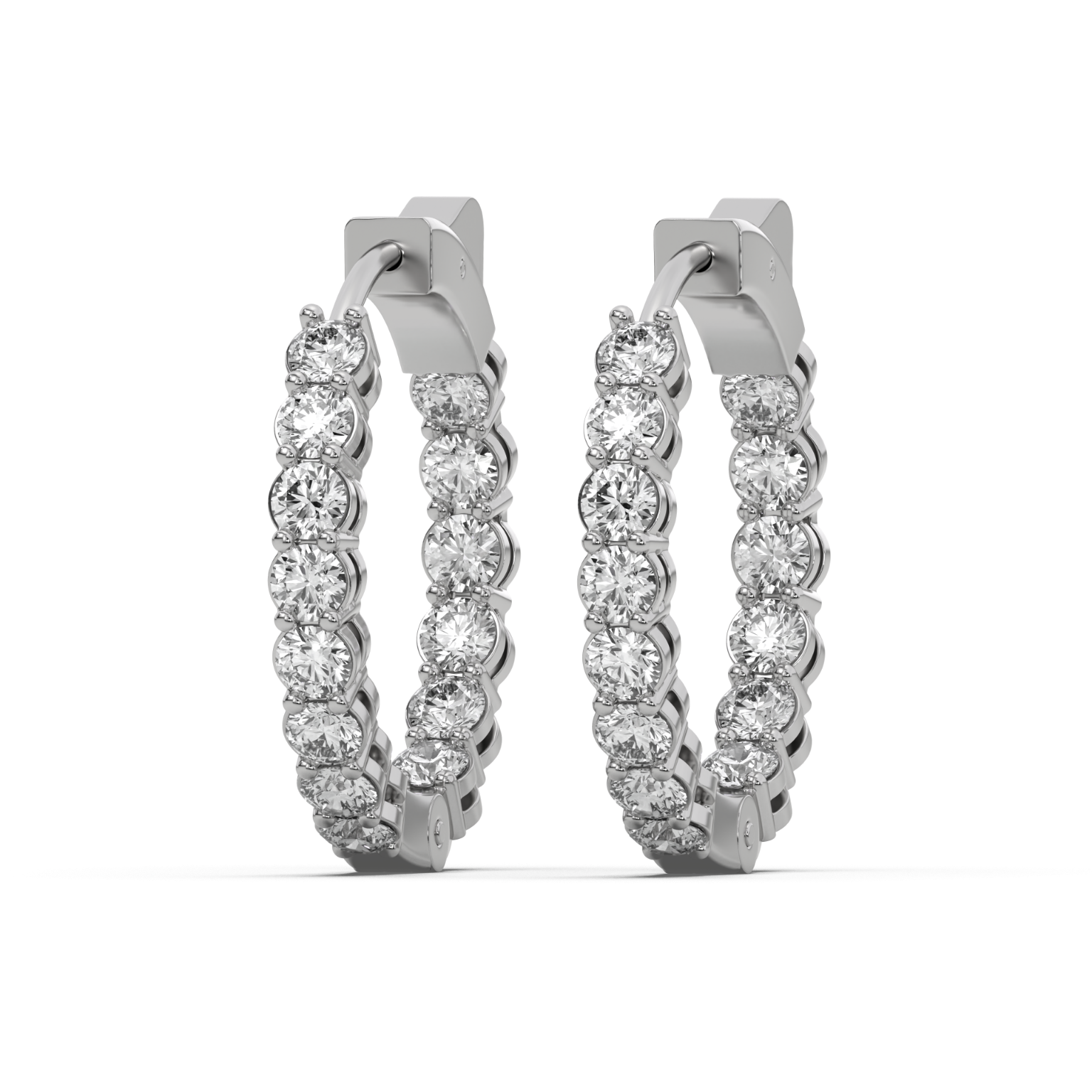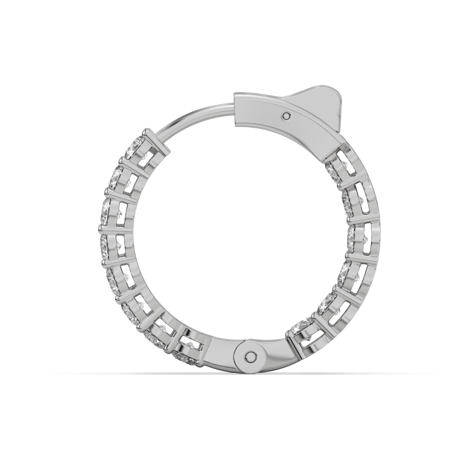 All-around shimmer. Round diamonds on both sides of the hoop reflect light with every move.